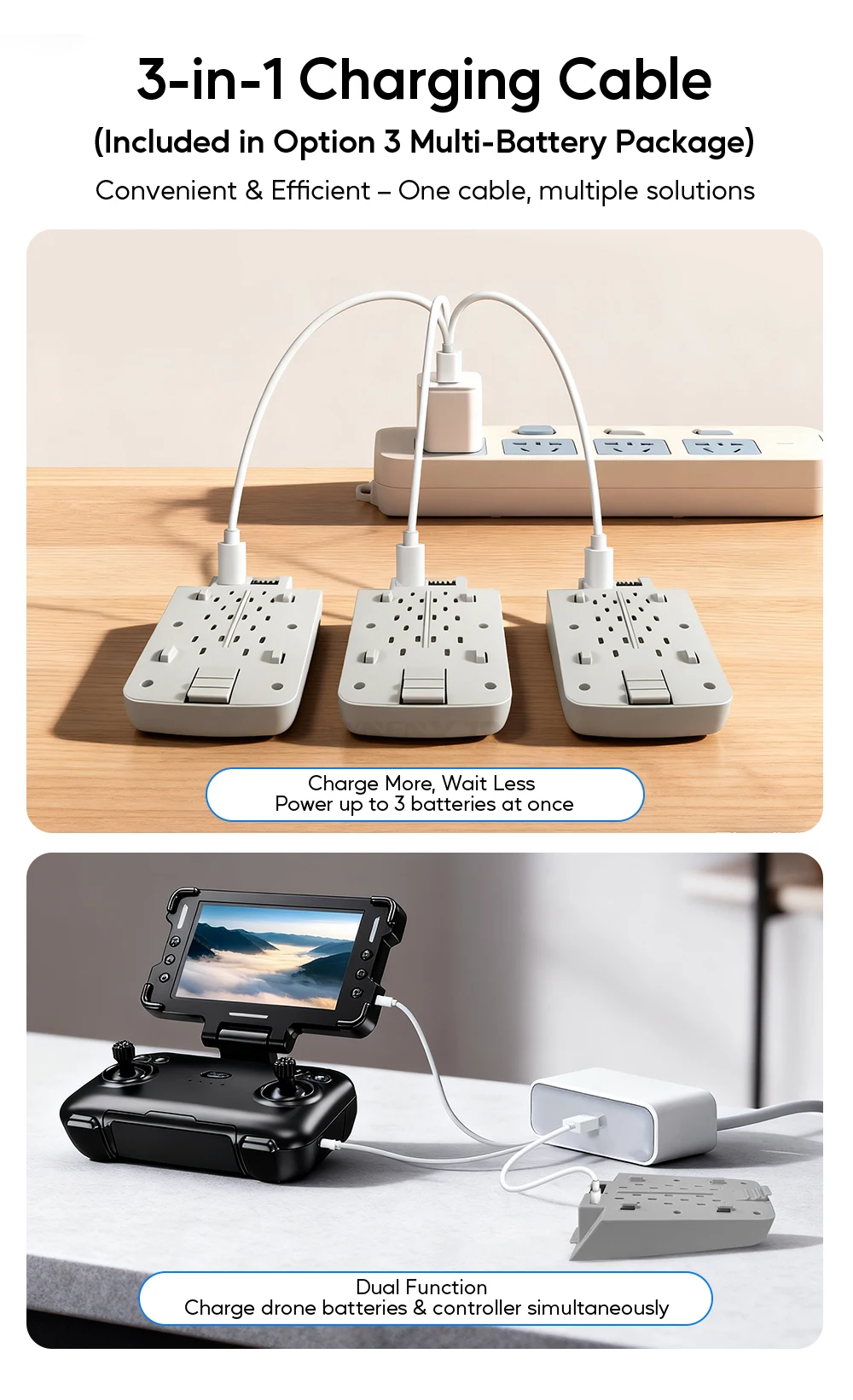 3-in-1 Charging Cable (Included in Option 3 Multi-Battery Package)